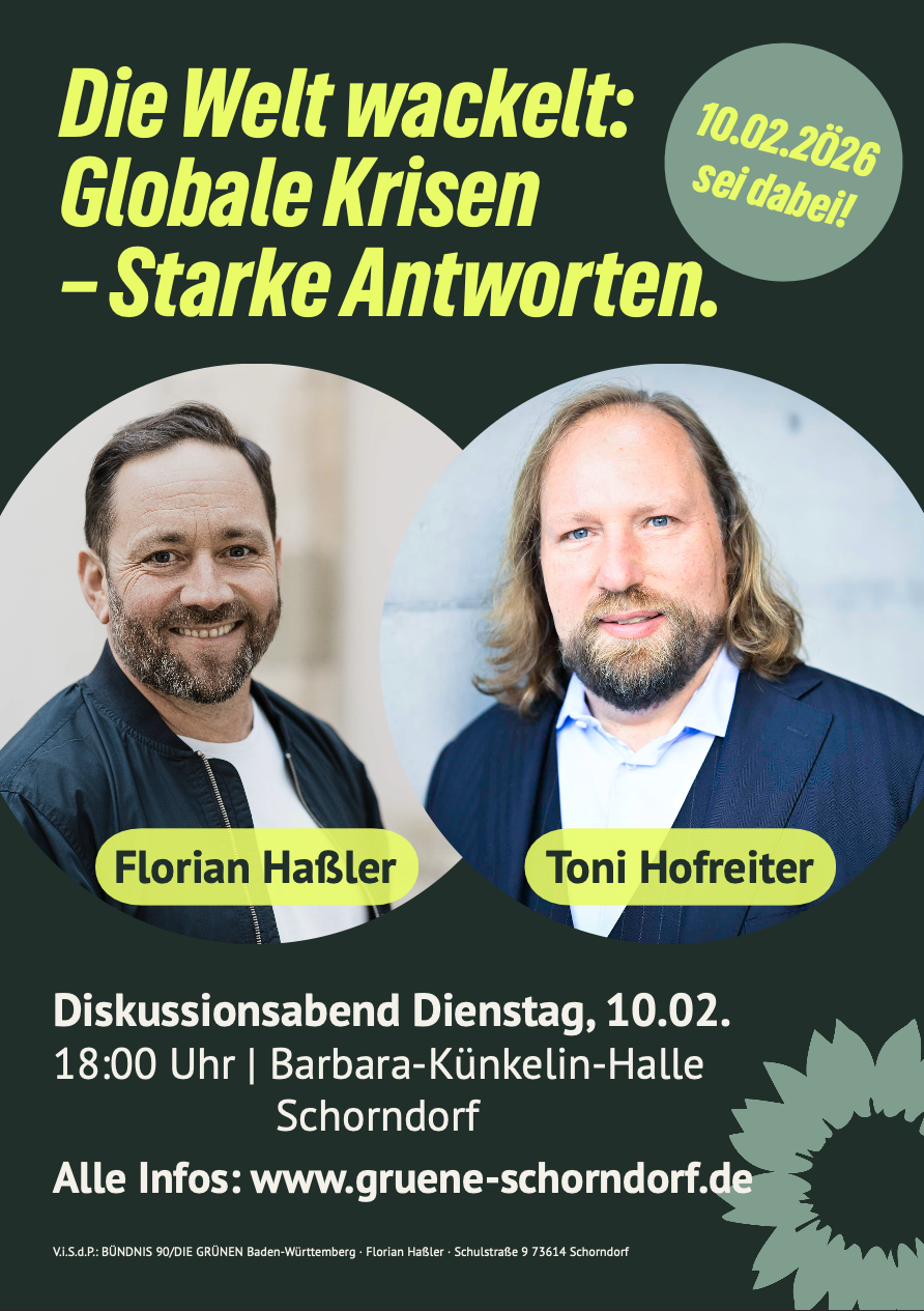 Zu Gast sind Florian Haßler und Toni Hofreiter, die ihre Sichtweisen auf die aktuellen Herausforderungen darlegen und Lösungsansätze diskutieren werden. Seien Sie dabei, wenn es darum geht, starke Antworten auf die Krisen unserer Zeit zu finden.